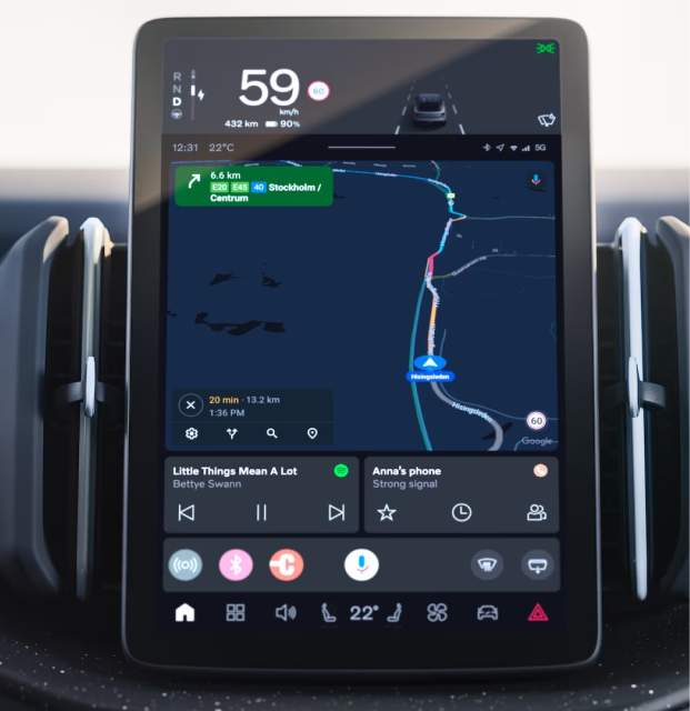 O carregamento rápido está disponível em estações de carregamento rápido de corrente contínua DC. Você pode encontrar estações de carregamento no seu trajeto selecionado usando o Google Maps a partir do painel central ou do aplicativo do Volvo EX30. Você também pode carregar em casa com uma wallbox carregamento da Volvo Cars.