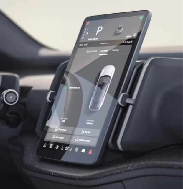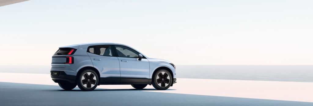 O EX30 pode estacionar sozinho, fazendo a direção, aceleração e frenagem por você.